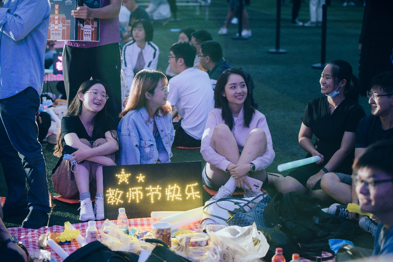 来自李蕉课题组的2020级硕士研究生靳斯琪表示,初到清华,初入师门,就有幸与导师李蕉老师和师兄师姐共同度过了一个十分难忘的教师节。草坪围坐夜话,零食糕点畅享,话题不断,梗子不停……两个小时暂停任务,晚会结束后全团又以更加饱满的状态,立即投入紧张又高效的学习和工作,通力合作。这一张一弛之中,实则是老师的言传身教,用无声语言与行动带领我们在学术科研、社会工作与生活之中寻求最佳平衡点。师门齐聚星空下,霏霏细雨,歌声悠扬,只为在这特殊的日子,为我们最尊敬和亲爱的老师送上最诚挚的祝福和爱意。