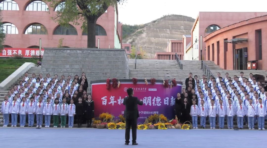 主会场庆祝大会结束后,陕西省清华附中文安驿学校分会场师生先后表演了《南泥湾》《我的遥远的清平湾》《与你共呼啸》等节目,展示了师生良好的精神风貌和学校优秀的育人成果,也以精彩的节目表达了对学校的深深祝福。