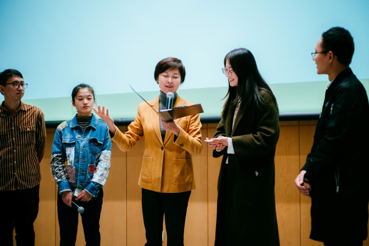 此次论坛也专门设置了朗诵环节。根据敬一丹的建议,现场邀请八位同学分成两组朗诵了《我的南方北方》这一篇目。敬一丹就两组同学的表现提出了改进建议并亲身示范,并表达了对于同学们的鼓励。