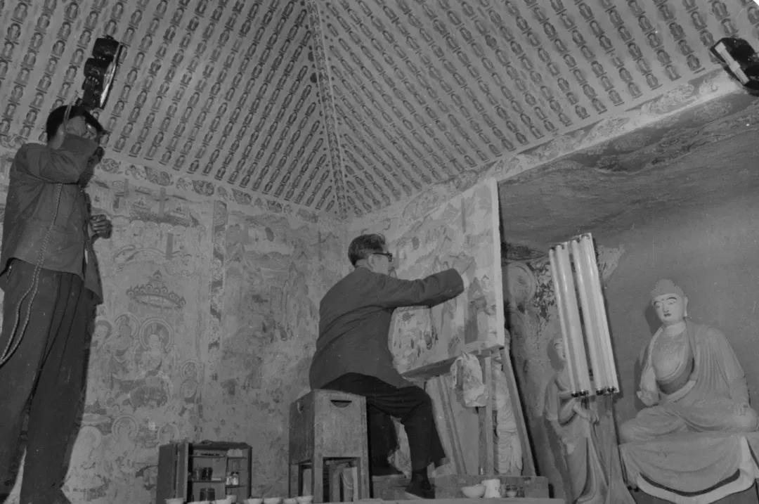 1978年,常书鸿于103窟临摹壁画