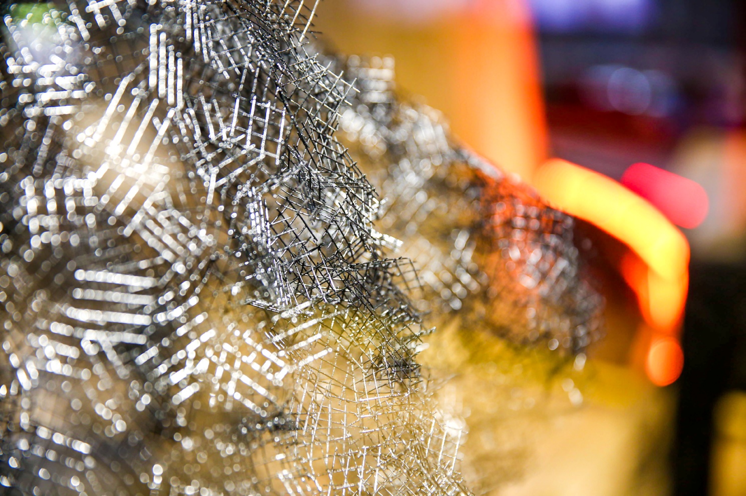 作品简介:作品希望通过对物质存在的思考来探索人与自然之间的关系。在形式上使用铁丝网碎片堆垒成形,在空间上运用一层套裹一层的方法,在视觉上产生虚实相生的意境。