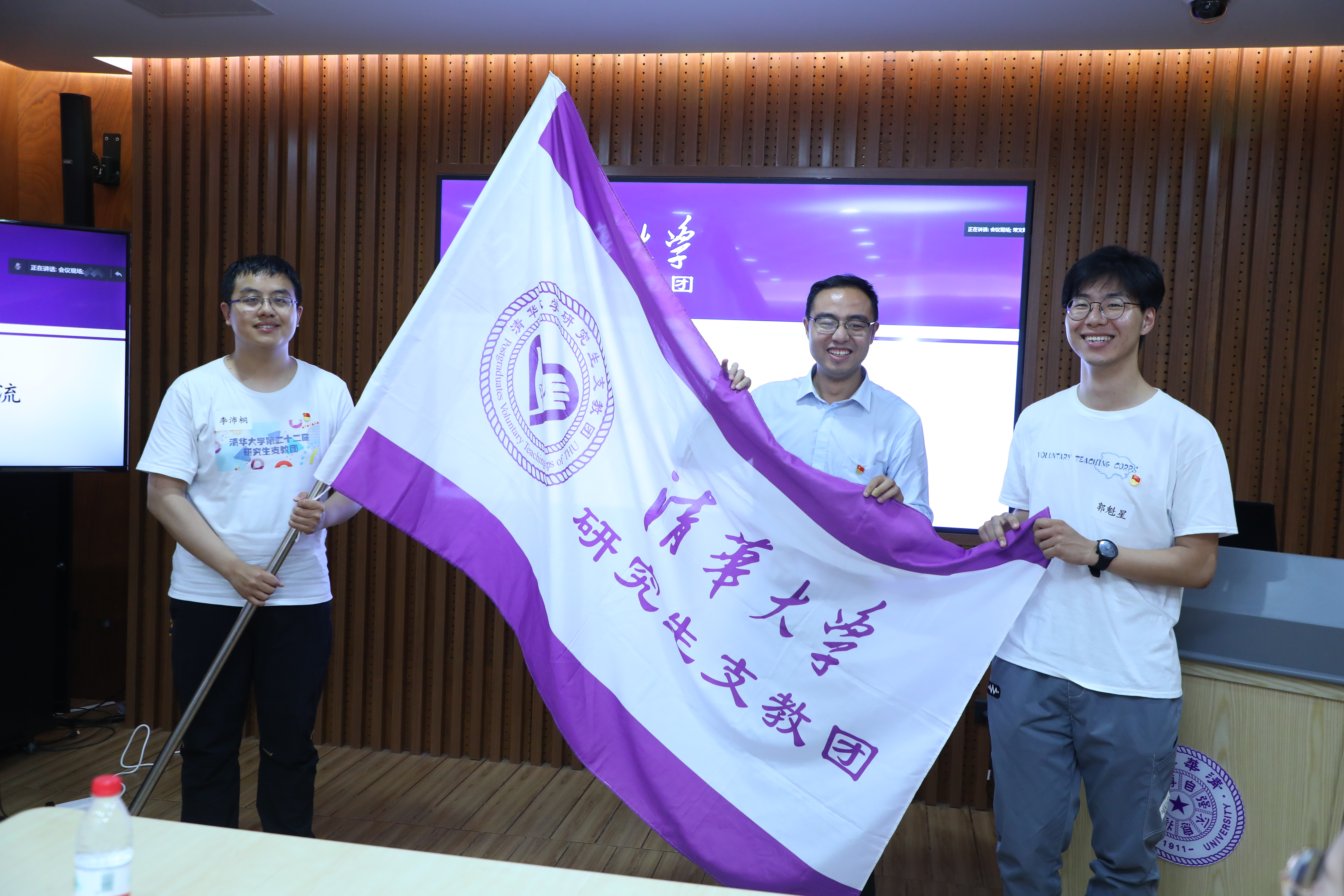 会议最后,第二十三届研究生支教团的志愿者共同写下寄给一年后自己的信件,并由第二十二届研究生支教团代表向即将出征的第二十三届研究生支教团授予团旗。