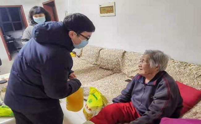邓平慰问辖区老党员(左一)