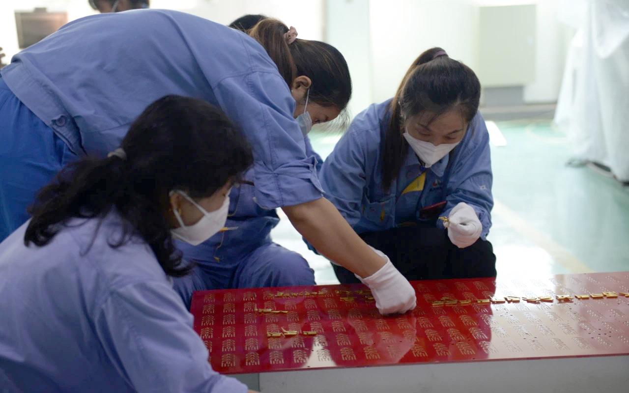 《贺匾》由南京晨光艺术工程有限公司制作完成,采用錾刻、贴金、机雕、激光切割、3D打印、精密铸造等多种工艺制作而成,展现了传统工艺与现代工艺的有机融合。