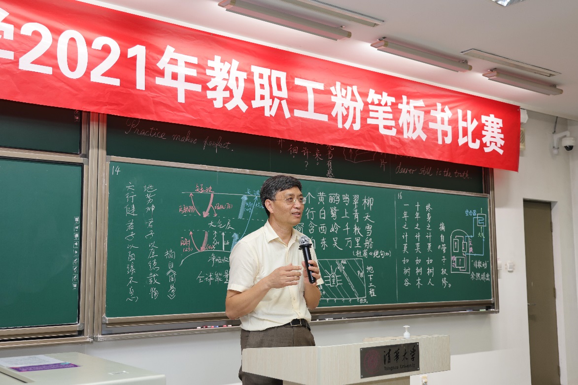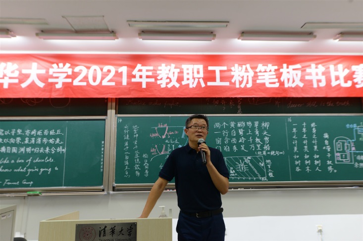 板书比赛日益成为清华立德树人、教书育人的靓丽名片。希望通过粉笔板书比赛,老师们能够以笔会友,以字结缘,在各自的工作岗位上担负起立德树人的根本任务,赓续百年初心,担当教育使命,向世界一流大学建设和全面建成社会主义现代化强国的第二个百年目标继续努力。本次比赛由校工会主办,工会书法协会、剧艺社承办,同时也得到了教务处和学生社区管理中心的支持。
