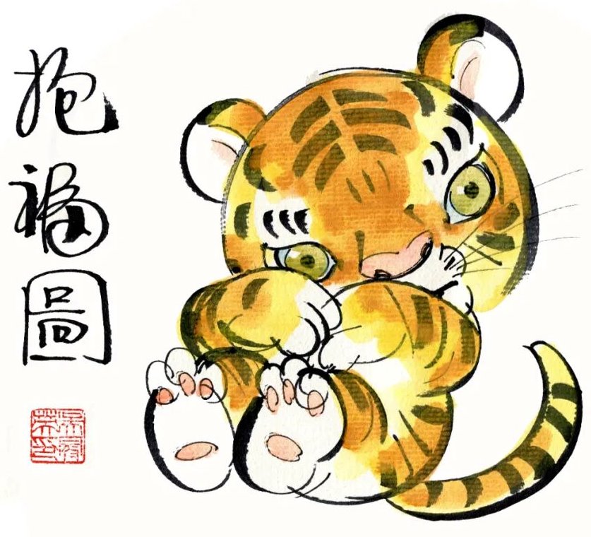 “虎”与“福”“富”谐音,寓意福运临门、富贵临门。3克圆形金币与15克圆形银币背面图案采用“抱虎”的拟人化姿态造型,借谐音寓意“抱福”,同时还有抱团、凝聚、团聚等美好的祝福之意。