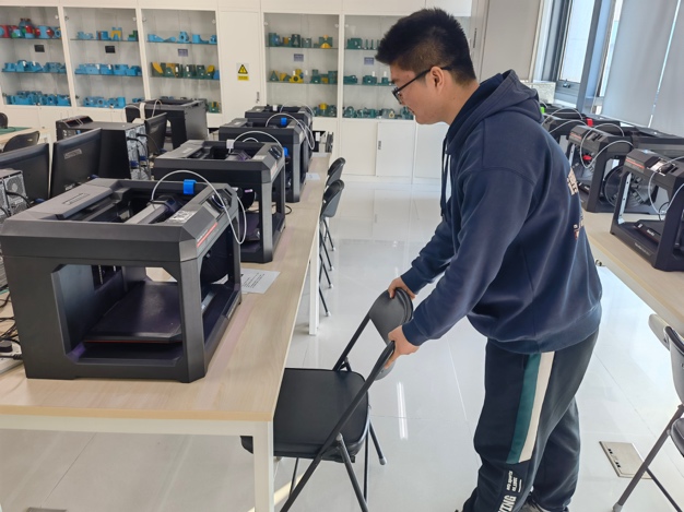 本次实验室清理日,来自机械系课题组的34人共同参与了3D打印实验室清扫工作。课题组师兄师弟们还一起参加了“实验室大作战”活动。看着焕然一新的实验室,机械系2020级博士生刘嘉辉感慨道:“实验室清扫让我收获满满,研究生生活离不开实验室,一个好的实验室环境是做好科研、度过研究生生活的基础。”