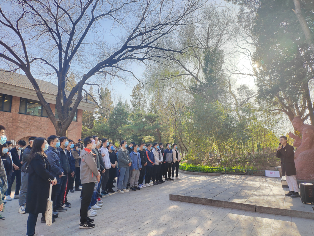 在三院遗址前,贾晗以“清华第一个中共支部的建立历程”为主题开展宣讲,为大家介绍了三院的历史沿革和三院人物的历史事迹,并为大家讲述了清华早期党组织的光荣历史和“三院精神”。宣讲结束后,同学们依次在三院遗址旁瞻仰并合影留念。