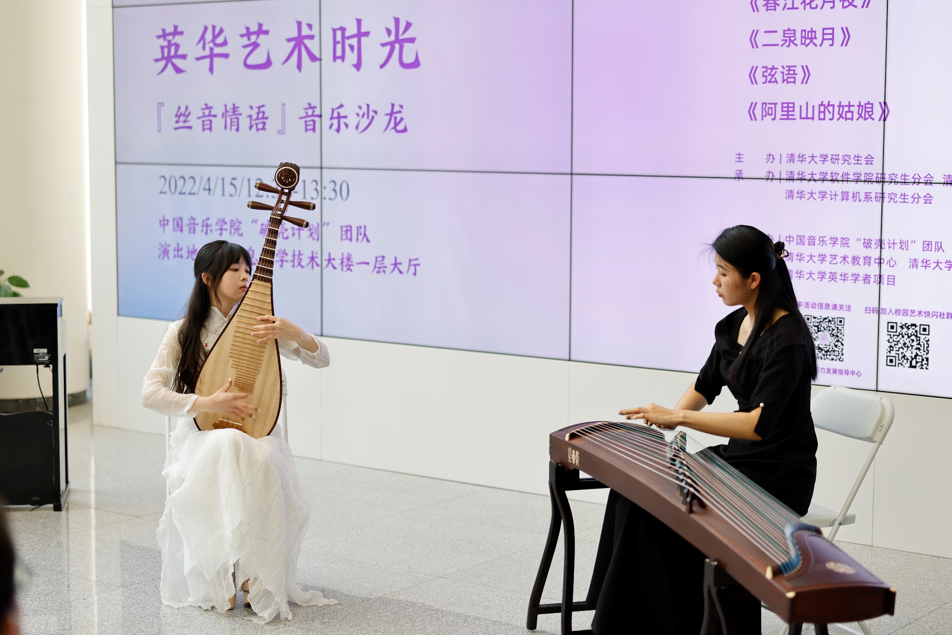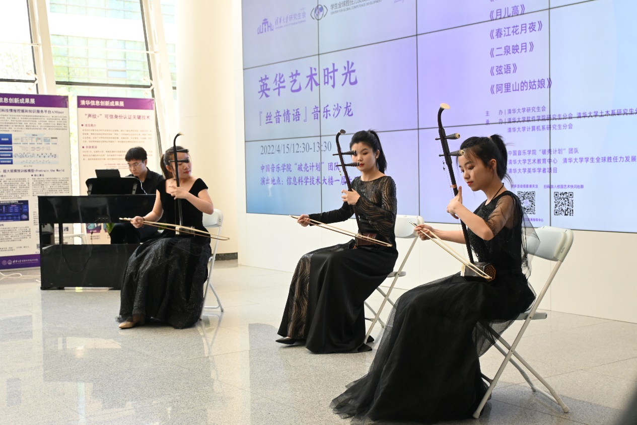 乐鱼(中国)网4月20日电(通讯员 赵胤钦)4月15日中午,“英华艺术时光·丝音情语”音乐沙龙在信息科学技术大楼(FIT楼)一层公共空间奏响。来自中国音乐学院的“破壳计划”团队为现场百余名师生带来了一场婉转悠扬的民乐盛会。