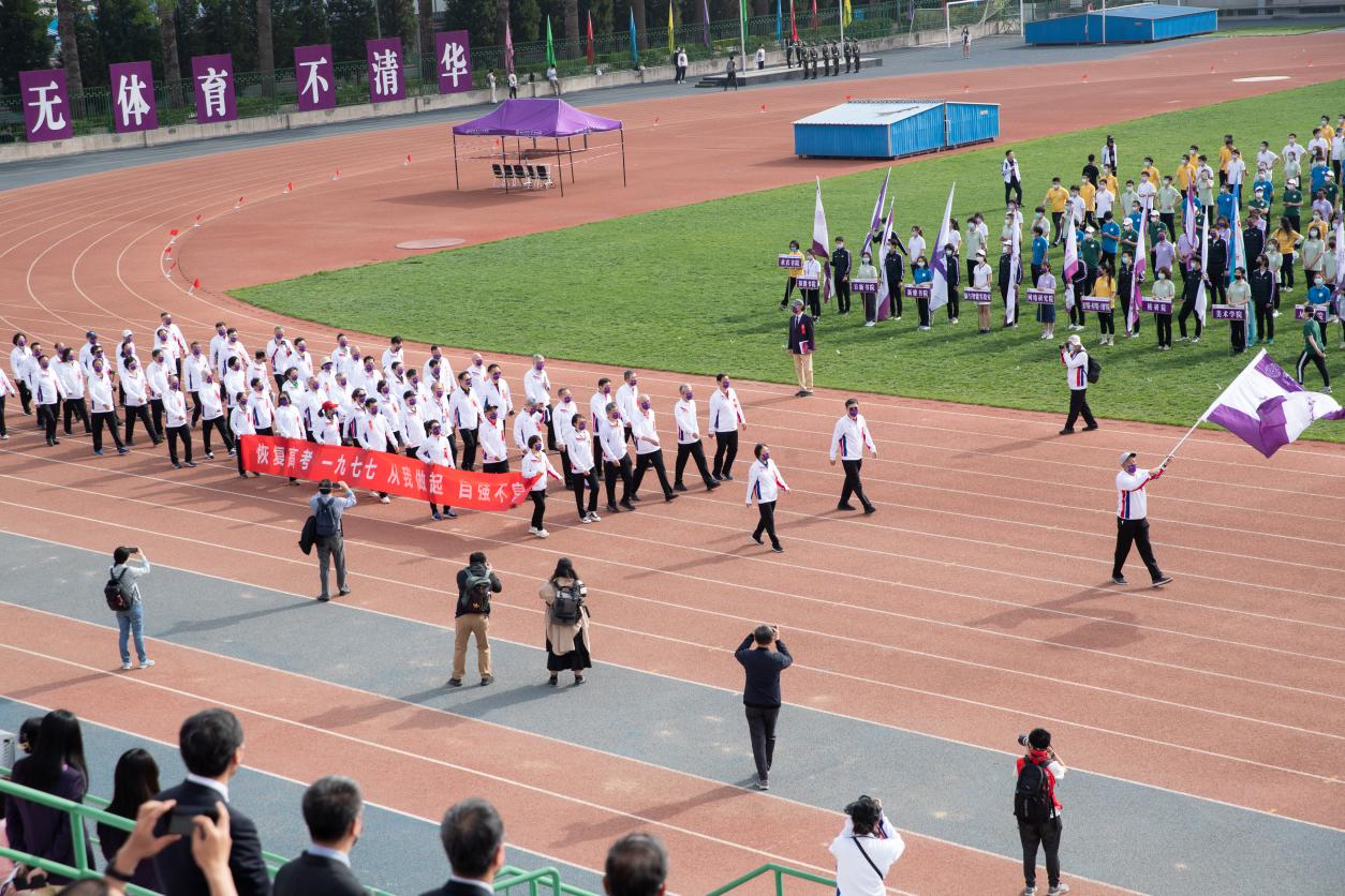 自2015年起,校友方阵已逐渐成为马杯入场式的“传统项目”。毕业10周年、20周年、30周年、40周年、研究生校友方阵入场赢得了全场最热烈的掌声。他们与时代同向同行,与清华共同前进,在各自岗位上不懈奋斗,“无体育,不清华”的精神已深深烙印在每一个人的心中。