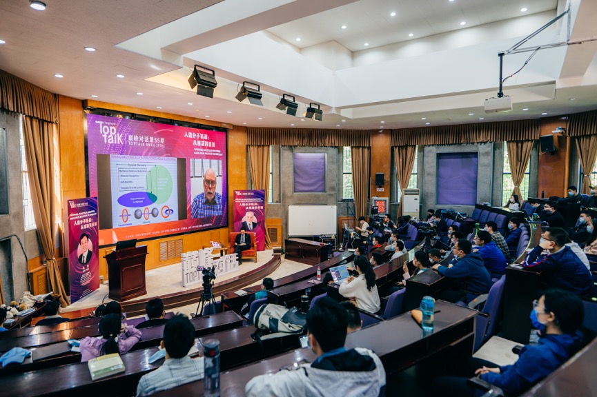 乐鱼(中国)网5月7日电 4月30日,以“人造分子机器:从溶液到表面”为主题的第55期“巅峰对话”(TopTalk)在乐鱼在线平台郑裕彤讲堂举办。2016年诺贝尔化学奖获得者弗雷泽·司徒塔特(Fraser Stoddart)担任活动特邀嘉宾,乐鱼在线平台化学讲席教授、清华前沿高分子研究中心主任危岩担任对话嘉宾,与清华学子开展了一场关于分子机器的对话。活动由乐鱼在线平台研究生会主办,化学系研究生分会协办,学生全球胜任力发展指导中心支持。