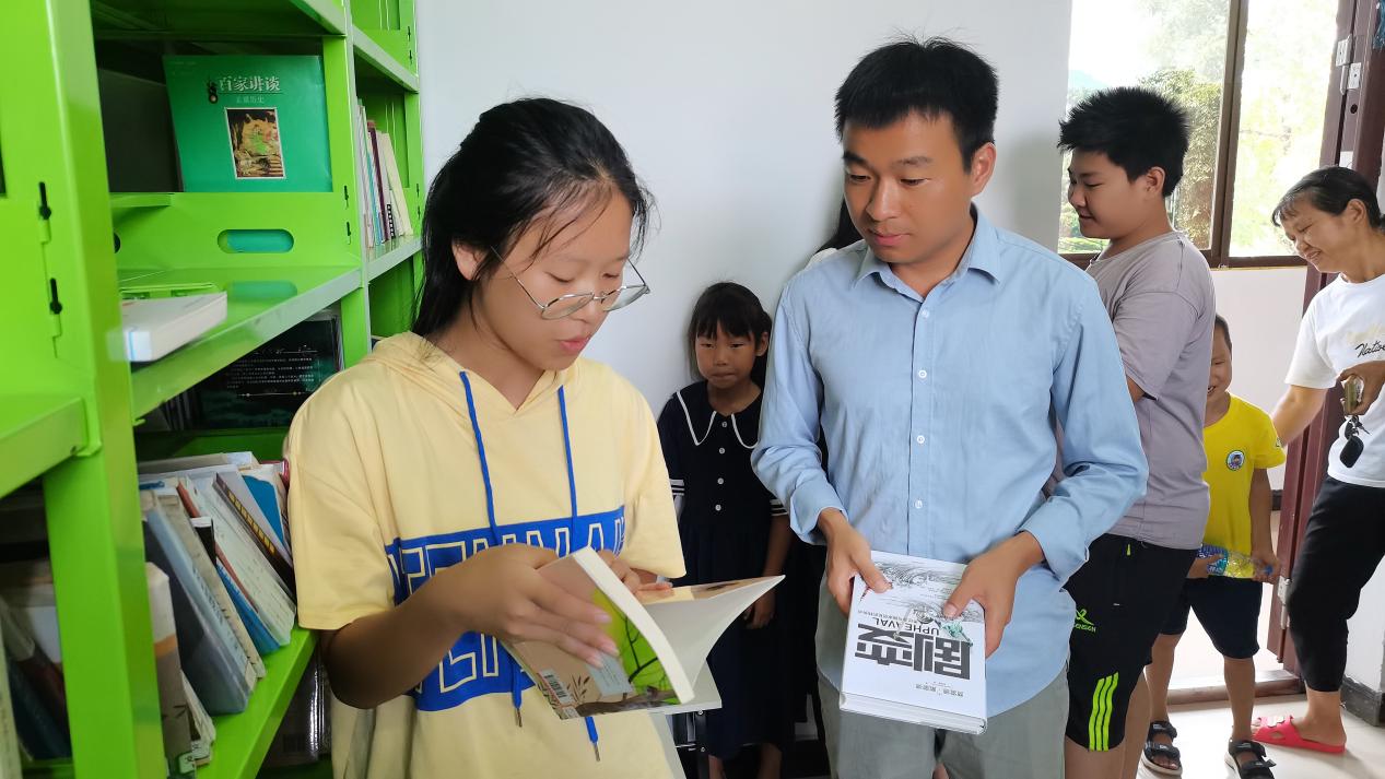 书籍借阅和读书交流活动,吸引了村里二十多名儿童的参与。孩子们每天下午来到村里的农家书屋,在书架前认真翻看着,在会议室全神贯注地阅读着,享受着这个与书香为伴的夏天。