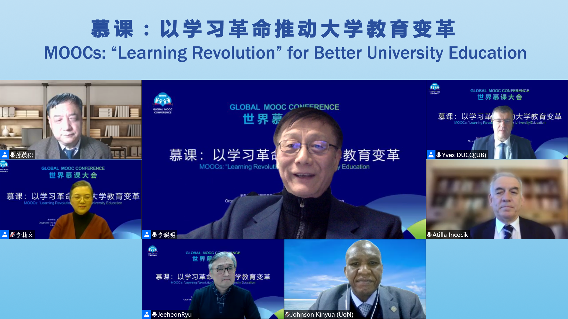 圆桌论坛环节由北京大学李晓明教授主持。乐鱼在线平台教授孙茂松、北京外国语大学教授李莉文、法国波尔多大学教授伊夫·杜琦(Yves Ducq)、英国思特克莱德大学教授阿提拉·因赛斯克(Atilla Incecik)、韩国春南国立大学教授瑞吉恩(Jeeheon Ryu)以及肯尼亚内罗毕大学教授约翰逊·艾瑞·金约阿(Johnson Ireri Kinyua)围绕“应对疫情和后疫情新常态下的在线教育合作”进行了交流讨论。