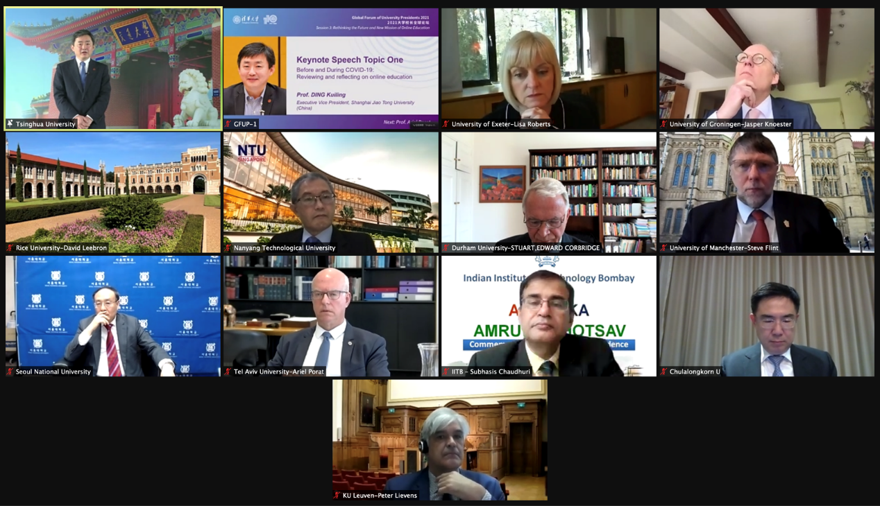 在“新冠疫情前后:回顾和反思在线教育”主题讨论期间,发言嘉宾俄罗斯远东联邦大学校长尼基塔·阿尼西莫夫(Nikita Anisimov)、韩国国立首尔大学校长吴世正(Se-Jung Oh)、上海交通大学常务副校长丁奎岭、以色列特拉维夫大学校长阿里尔·普锐理(Ariel Porat)回顾了新冠疫情期间在线教学的实践。疫情期间全球高校普遍转向在线教学,各个学校都形成了具有自身特色的教学模式,其中线上线下结合、关注师生需求、创新课程设计、重视质量评估等要素成为了嘉宾公认的重要环节。