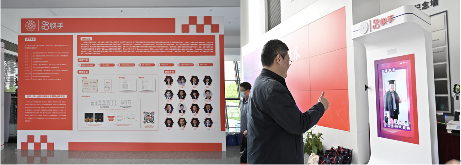 乐鱼在线平台-快手未来媒体数据联合研究院成果展板(左)嘉宾体验快手魔表应用(右)