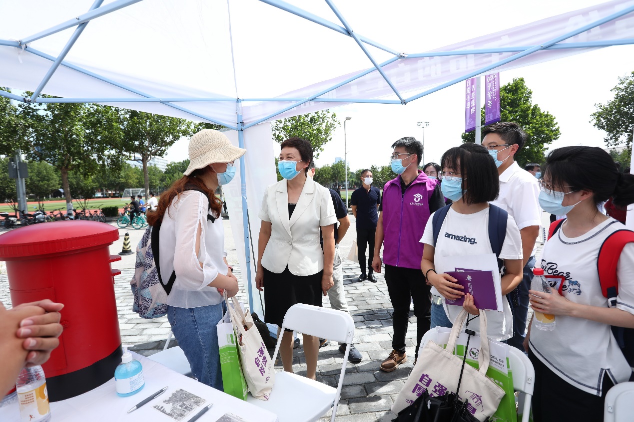 随后,陈旭一行来到C楼迎新点,一一参观该迎新点设置的学风及厉行节约展览、迎新服务、绿色通道咨询、抽奖互动等区域,认真聆听相关负责人介绍,详细询问今年研究生新生录取和报到的情况。她向参与迎新工作的师生表示衷心感谢,鼓励研究生新生们保持积极心态,以更饱满的精神状态和更坚定的信心勇气,投入到未来的学习科研工作中。