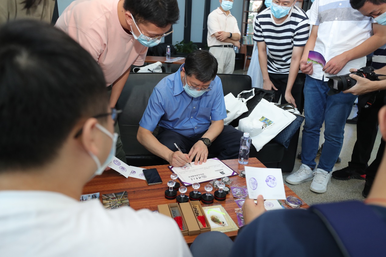 随后,邱勇一行来到人文学院迎新点,详细询问研究生招生和现场报到情况,并与新生们一一交流。来自台湾的新生偕元慈刚刚领到自己的学生卡,她激动地说:“整个报到流程让我真切感受到清华园的温暖,感谢各位老师同学的辛勤付出!”邱勇欢迎偕元慈来到清华,他说:“人文日新的‘新’也意味着新同学的到来让校园焕发新的光彩,大家在特殊时期来到清华,清华也早已做好了充分准备,与大家一起共成长。”邱勇还与正在做迎新引导工作的新生助理们亲切交流,询问他们参与迎新工作的感受,并对师生们的辛勤工作表示感谢。