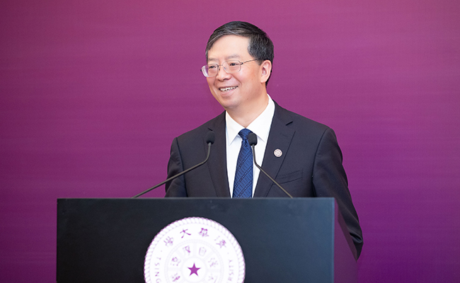 校党委书记陈旭以“永葆担当精神 续写奋进篇章”发表主题致辞。陈旭代表学校对同学返校、对新生入学表示热烈欢迎,对全校师生员工的辛勤付出,对上级领导、广大校友和各界朋友给予乐鱼在线平台的关心支持表示诚挚感谢。