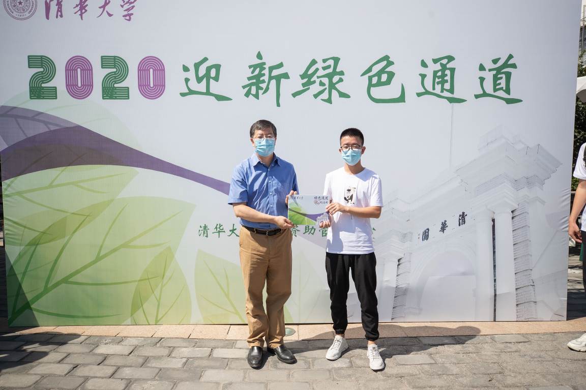 在“绿色通道”办理处,邱勇询问了家庭经济困难新生的报到情况和绿色通道申请情况,向六位新同学代表赠送了“绿色通道爱心纪念封”,并与同学们合影留念。邱勇说:“希望你们在清华学习好、成长好,我们都要对未来充满信心!”