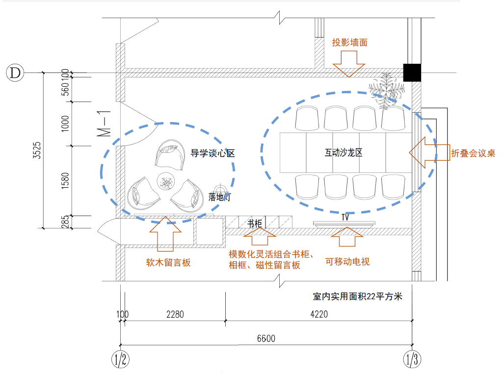 1.协调资源打造“导学交流空间”,为导学交流提供硬件条件。营造温馨的导学交流氛围,创设舒适的沟通环境,为思政建设提供实体抓手。导学空间能够承载多种交流场景,平面设计做到动静分区、空间可塑,通过收纳、移动家具以满足各种使用需求。支部鼓励研究生邀请老师到导学交流空间交流,得到积极响应。