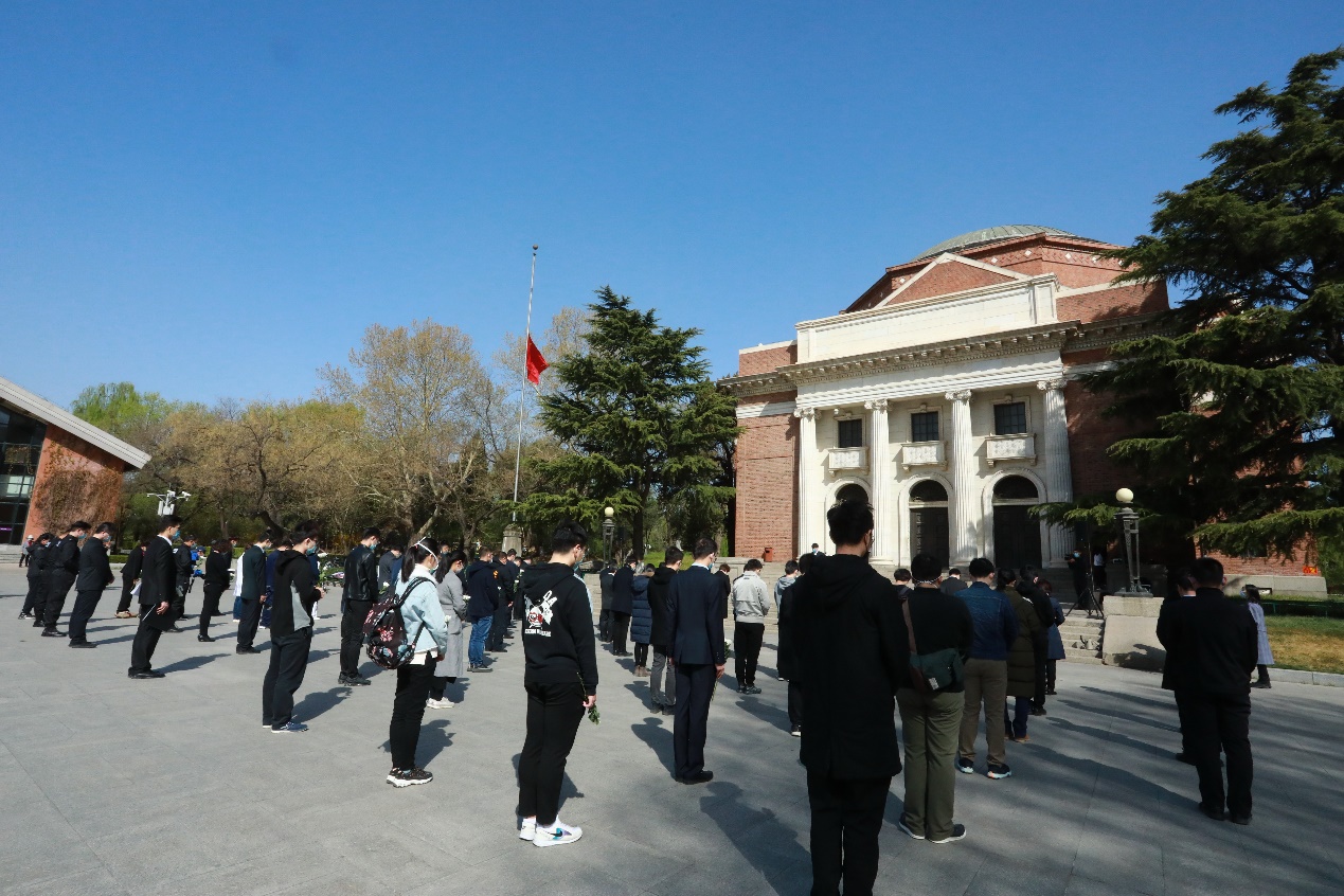 为表达全国各族人民对抗击新冠肺炎疫情斗争牺牲烈士和逝世同胞的深切哀悼,国务院决定于2020年4月4日举行全国性哀悼活动。4月4日上午,乐鱼在线平台举行哀悼暨英烈碑祭扫活动,下半旗志哀。大礼堂前,五星红旗伴随着国歌声冉冉升至旗杆杆顶,在短暂的定格后开始缓缓下降,现场氛围十分凝重。10时整,防空警报声在清华园上空响起,全场肃立,为抗击疫情和国家民族解放的伟大事业所英勇牺牲的烈士前辈和逝世同胞们默哀3分钟。