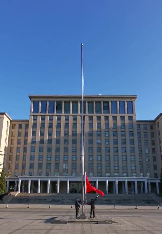 依照《中华人民共和国国旗法》的规定和学校的安排,除寒假假期外,每天都升降国旗,这一工作平时是由国旗仪仗队的同学们完成的。国旗仪仗队目前有六十余名队员,全队分为七组,分别负责周一到周日的升降旗。受疫情影响,在队队员们都无法返校。曾在队两年半的材料学院大四学生经求是寒假期间没有离校,此时,他承担起了这支队伍的责任。为了保证国旗的正常升降,经求是几乎每天都会来到主楼前执行升旗任务或作指导。在这段时间里,他执行任务的次数甚至快赶上了在队期间的总次数,对此他无怨无悔——他始终认为,自己作为一名仪仗队员,应当在这种时候站出来。