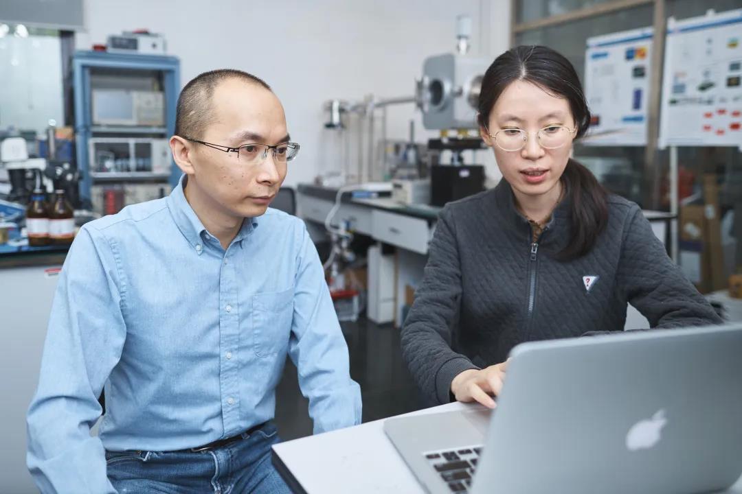 冯骅(左)与博士后李红进行数据分析讨论