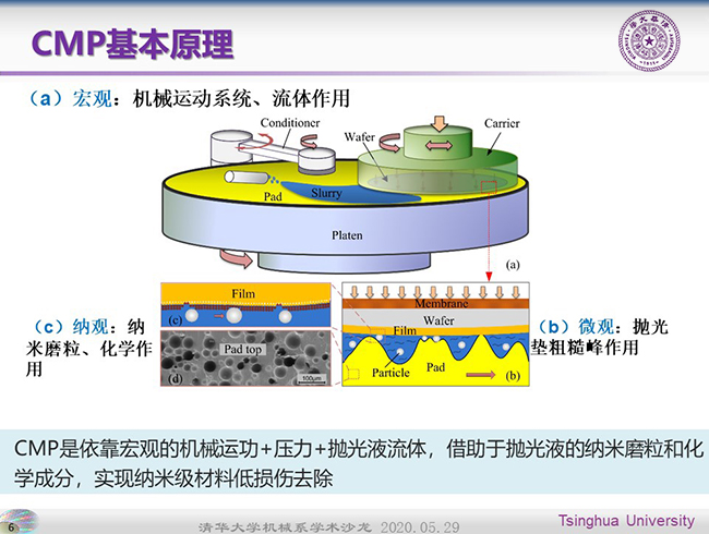 赵德文简要介绍了化学机械抛光(CMP)在芯片制造中的发展现状与趋势。CMP是芯片制造中实现晶圆表面纳米级高效平坦化的重要手段,并围绕晶圆表面纳米精度加工的理论与技术难点,从抛光压力分区调控、抛光终点准确判断与智能调控、超洁净清洗等方面,介绍了全局纳米级平坦度与洁净度精细控制的原理、技术与应用效果。