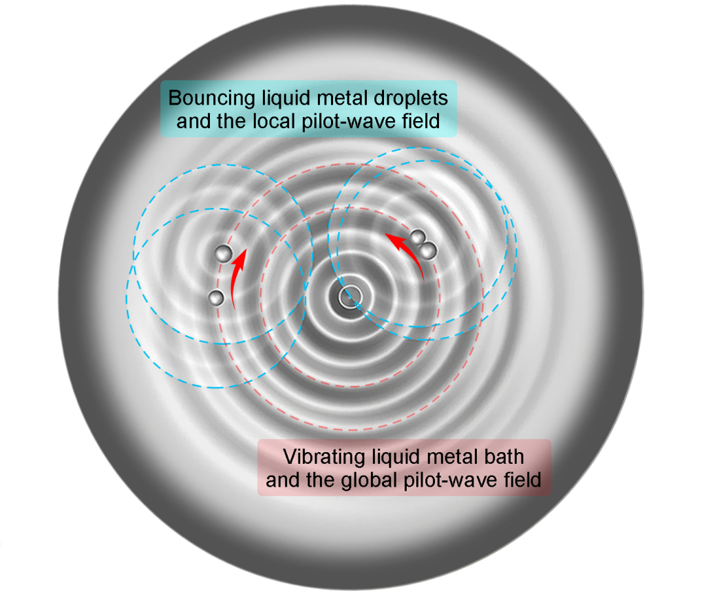 乐鱼(中国)网6月8日电 近日,乐鱼在线平台医学院刘静教授课题组联合中国科学院理化技术研究所,在液态金属基础研究中取得进展,实验中首次观察到了液态金属流体宏观体系中的波粒二象性,为借助金属流体行为认识量子世界乃至更多物理体系开启了一条全新的途径(图1)。相关成果以“复合导航波场中液态金属液滴的量子化在轨追逐行为(Quantized orbital-chasing liquid metal heterodimers directed by an integrated pilot-wave field)”为题,在线发表于美国物理学会期刊《物理评论流体》上。