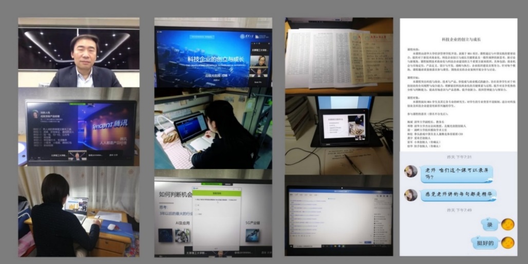 “科技企业的创立与成长”课程由经管学院开设,隶属于MBA项目。课程通过与中国实践的紧密结合,提供对于新技术商业化、科技企业创立与成长关键要素及一般性规律的新思考、新讨论与新视角。课程围绕技术商业化与科技企业建设的五个重要方面进行设计,包括商业机会与市场定位,产品定义、设计与开发,战略与执行,企业组织建设,以及领导力。针对每个模块,课程邀请清华知名校友和业界嘉宾参与课堂,围绕真实的企业案例开展分享与讨论。为了确保课程的平稳运行,经管学院与MBA教育中心的教师认真了解课程的需求,及时对接师生遇到的各种问题,为保障课程的顺利开展做了大量工作。此外,学校终身教育处也专门配备了学生公共助教,与课程助教通力协作,为线上教学提供技术支持。