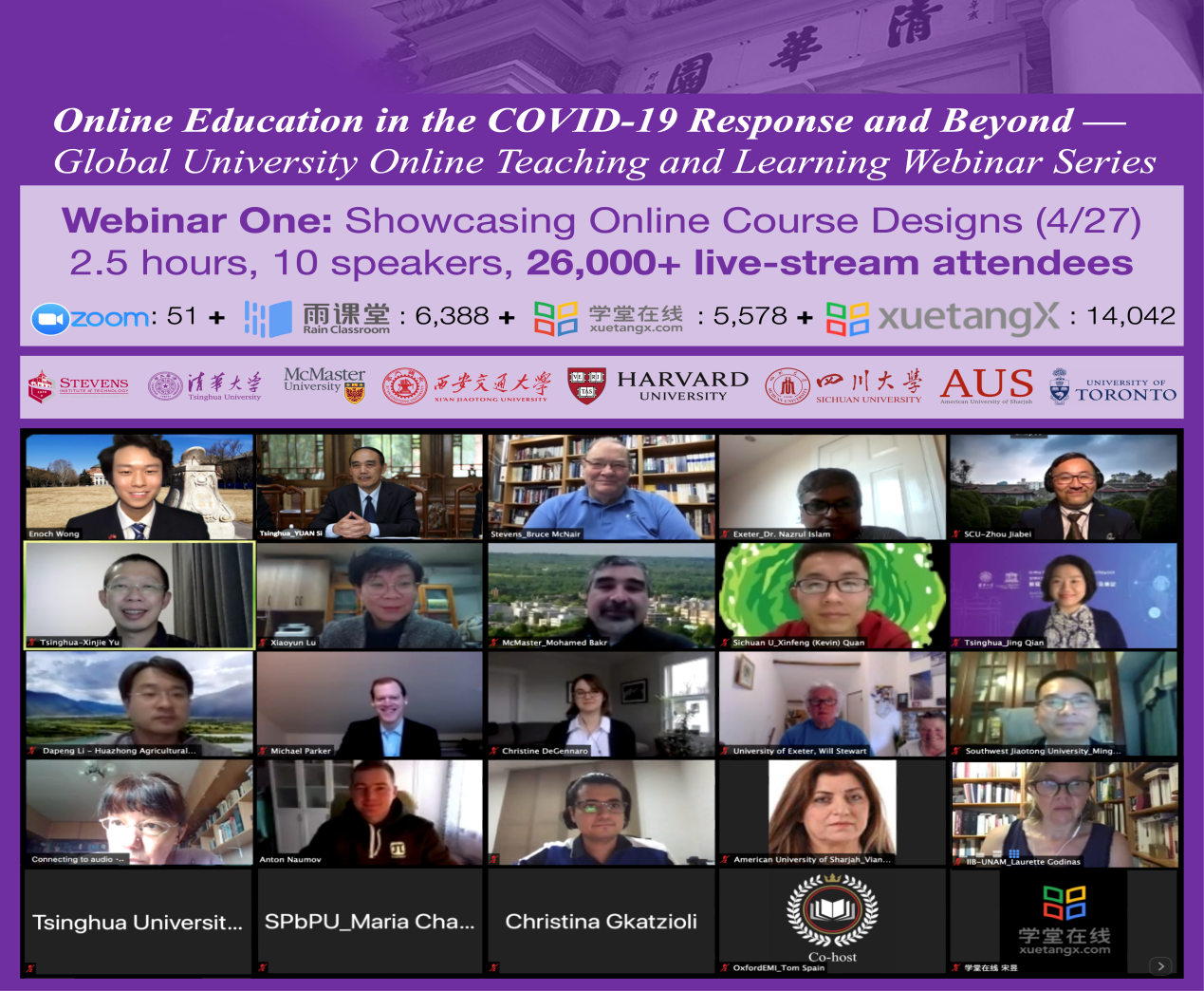 乐鱼在线平台4月29日电 4月27日晚,由乐鱼在线平台终身教育处、乐鱼在线平台国际处指导,乐鱼在线平台在线教学指导专家组、联合国教科文组织(UNESCO)国际工程教育中心(ICEE)联合主办,学堂在线协办的“在线课程设计展示云分享”召开。乐鱼在线平台校务委员会副主任、联合国教科文组织国际工程教育中心执行主任袁驷致辞,乐鱼在线平台在线教学指导专家组组长、电机系教授于歆杰作总结发言,乐鱼在线平台苏世民学者黄尔诺主持会议。来自亚洲大学联盟(AUA)创始成员单位及国内外知名院校的2.6万名代表,通过Zoom平台、学堂在线国际版、雨课堂等方式参加了云分享。