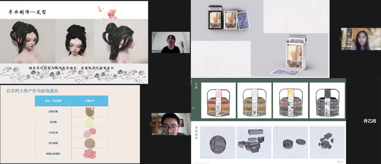 参会的各位评委对“中华工匠”课程的同学们在疫情期间所取得的进展给予了高度评价,同时也提出了针对性的建议。柳冠中表示,非遗文化需要用积极的形象进行传播,应将中国传统技艺语言化,使之更好地融合于项目呈现的载体或现代游戏中,使人们真正认知、了解中华非遗文化的内核。周维德表示,优秀的文化项目或文创产品应塑造打动人心的背景故事,帮助增加项目的市场化潜力。原博强调了非遗文化缘起的重要性,指出了解非遗文化的缘起与本质,有助于发掘、寻找合适的传承与创新路径。孙曼则围绕乐鱼在线平台即将迎来的110周年校庆主题为学生的创意项目指出了进一步改进的方向。