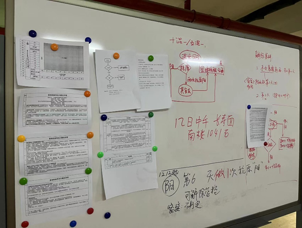 新闻学院有近20位老师组成了教职工志愿者突击队,轮流轮岗驻楼楼长,为阳性学生寝室配送三餐、药品、水等物资,统计学生健康状况,处理应急事务。
