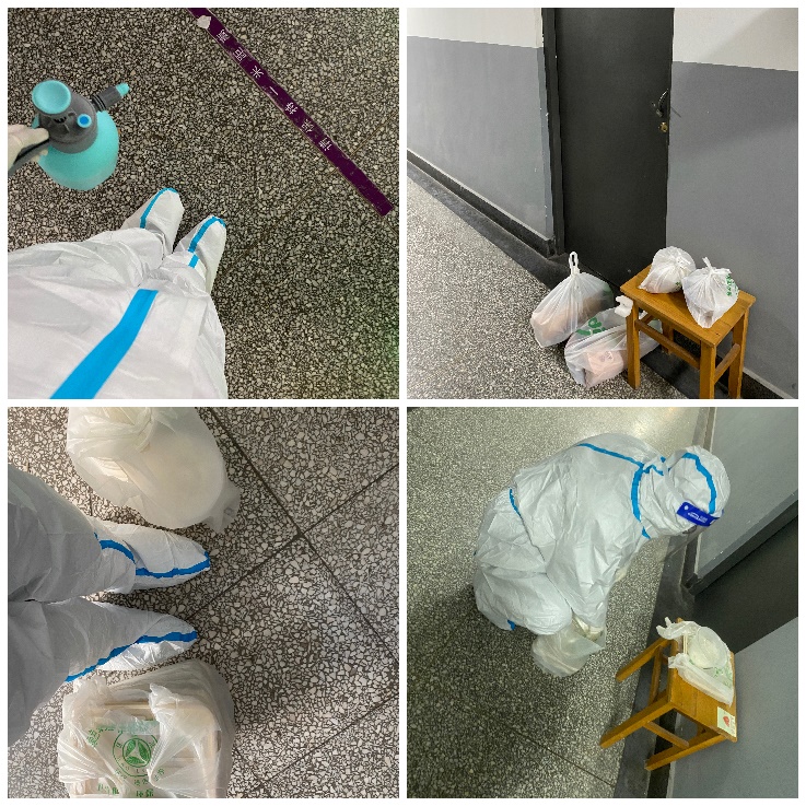 入驻西区36号楼的海外学习办公室蔡晓丹表示,在驻楼工作前自己从未穿过大白防护服,这次真正穿上并开展工作时,看着面屏内侧随着呼吸产生的淡淡白雾,听着耳边防护服摩擦的沙沙声,感受着渐渐从微汗到大汗,努力完成着一趟趟的餐食、体温计、药品、瓶装矿泉水配送,心中对这三年来疫情防控前线每一位工作者的敬意更加浓厚,也愈发坚定驻楼工作的信念。战略合作办公室的胡雪丹入驻了西区35号楼,她谈到,虽然工作千头万绪,但令每位前线驻楼教师倍感安心的是,学校的疫情防控指挥体系在持续变化的情况下高效平稳地运转着,各个环节层层相扣,这样坚实的组织保障,使得每一位新加入的力量都得以迅速找到状态。