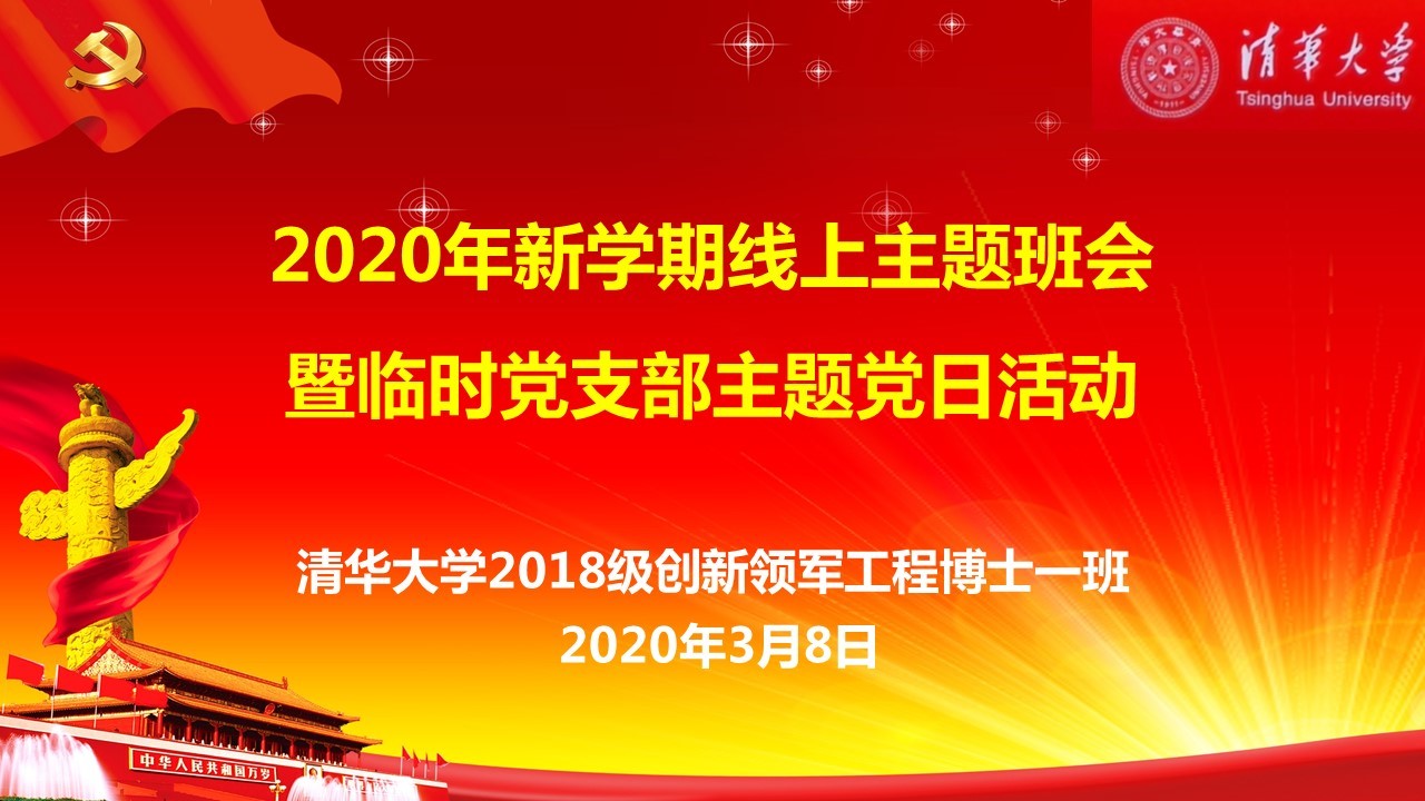 为进一步强化学习氛围、提高思想觉悟、浓厚同窗情谊、发挥集体育人作用,根据学校相关工作部署与要求,创新领军工程博士教育中心面向全体在读创新领军工程博士生发布了《关于召开新学期线上主题班会与临时党支部活动的倡议》,在3月初至4月中旬以班级为单位,组织2018级、2019级在读创新领军工程博士生,积极开展了丰富多彩的线上临时党支部活动与主题班会。
