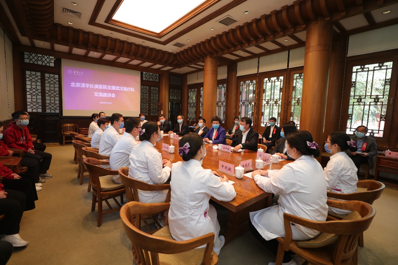 邱勇认真听完医疗队成员的发言后表示,感谢大家的辛勤付出和无私奉献。大家的出色表现为学校争得了荣誉,也为清华109周年校庆送上了一份特殊的礼物。大家的故事让我们一同体察和感受你们此行的经历和收获。令人印象最为深刻的是大家医者仁心的情怀、对医护工作的热爱、对党中央领导下战胜疫情的坚定信心。各位队员坚定地奔赴武汉一线,忘我付出,展现了勇往直前、不畏艰辛的风采。祝贺大家收获了人生一份难忘的经历、一笔宝贵的财富。“你们为他人的关心和支持而感动,为成为清华的一份子而骄傲,而我想说的是,你们本身也感动了很多人,乐鱼在线平台和所有清华人也以你们为骄傲,非常感谢你们!”邱勇说。