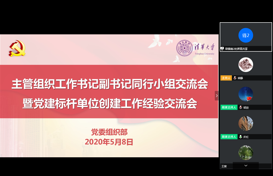本次交流会围绕党建标杆单位创建工作进行交流研讨。邹欣首先简要介绍了组工同行工作室的建立背景、目的、工作内容和本次会议的主题。随后,入选首批党建标杆创建单位的电子系党委书记金德鹏、机械系党委书记吕志刚、化学系党委书记梁琼麟和后勤党委书记邱显清分别就本单位创建的工作思路、具体举措、取得成效和努力方向进行经验分享。之后,参会的各单位党委书记副书记围绕上述内容,针对如何增强党委会党政联席会的联动性、党组织在教师学术评价中如何发挥自身作用、疫情防控期间如何创新党建工作形式等问题进行了交流讨论。