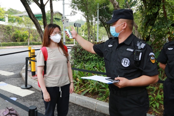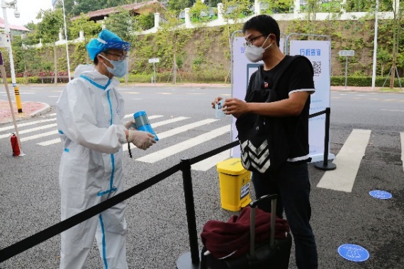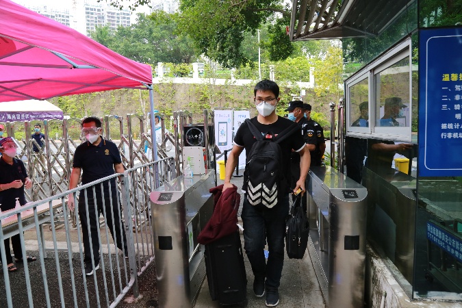 乐鱼(中国)网5月12日电(通讯员 黍离 马静宜 摄影 余飞慧 视频 丁超)根据深圳市教育局关于做好市内高校2020年春季学期开学准备工作的通知要求,结合拟毕业研究生及高年级研究生学习科研的实际需求,5月12日,乐鱼在线平台深圳国际研究生院学生开始分期分批、有序错峰返校。今天,首批30余名湖北籍学生返回校园。上午10时许,执行院长高虹,院党委书记武晓峰、党委副书记关添等在小北门等候并迎接首批回校的学生。研工办、后勤办、社康中心、安保、物业等各部门的工作人员高效有序地协助学生完成“信息报备-体温检测-消毒-资料收集-防疫物品领取”等一系列返校流程。