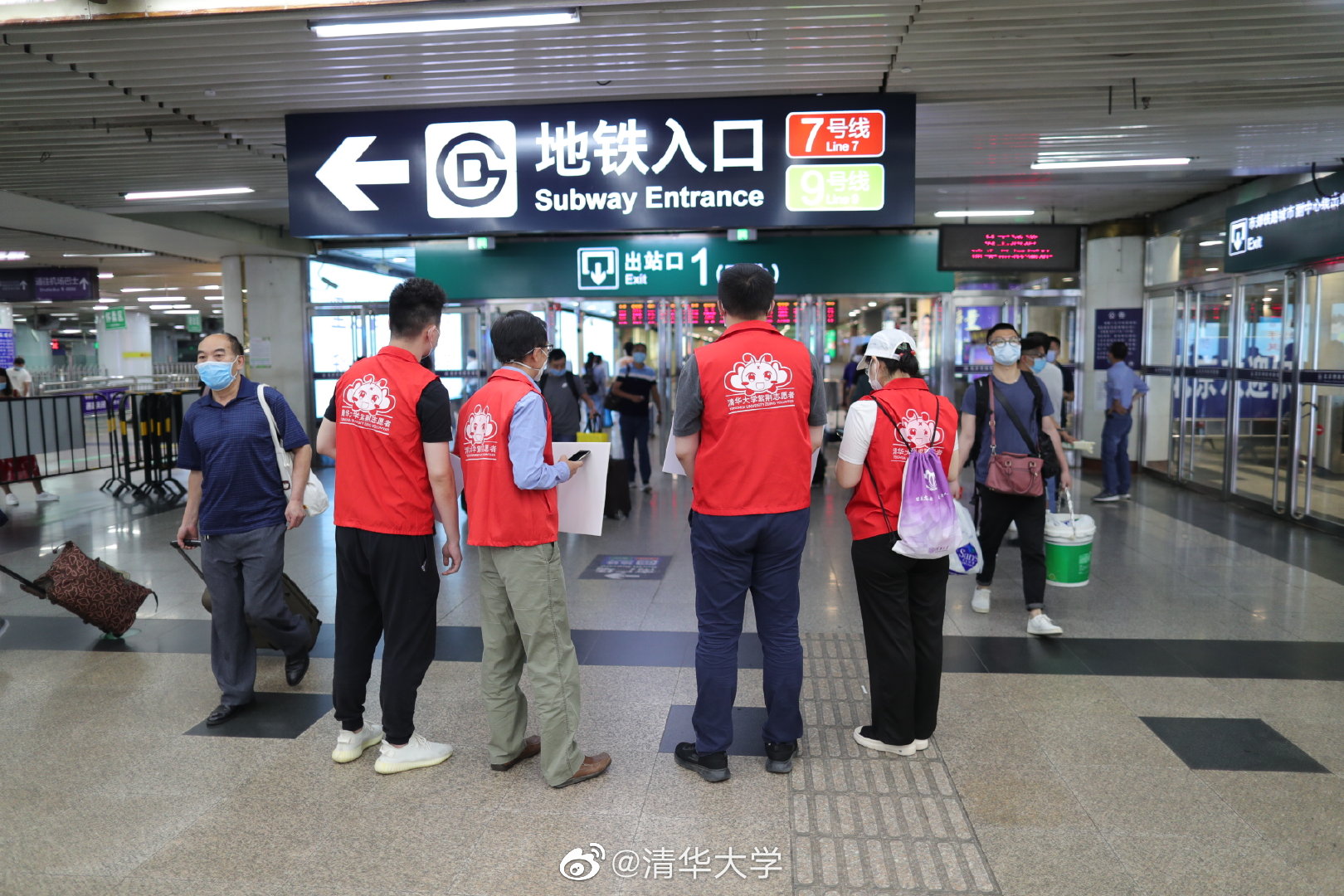 6月6日是来自山西太原的生命学院博士生寇甜甜返校的日子。一出车站,寇甜甜就看到了高举“风里雨里、清华等你”指引牌、穿着熟悉的红色马甲的学校接站志愿者。志愿者们“欢迎回家”的亲切问候,让她顿时有了温暖的感觉。