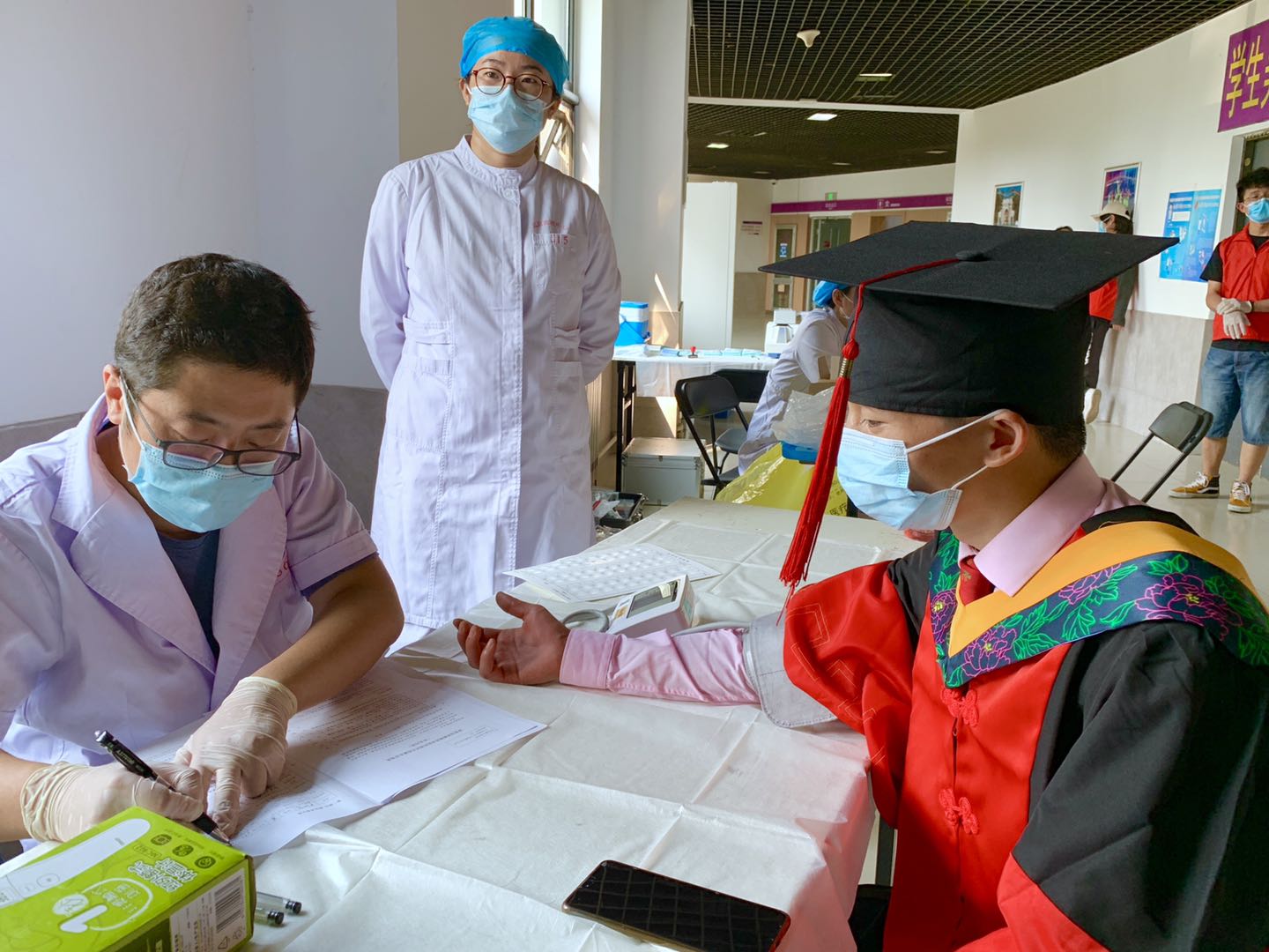 经管学院2017级博士毕业生尹西明早上刚刚身着学位服拍完毕业照,就来到献血现场,成为当天第一批献血者。尹西明多次参与献血活动,他说:“本来还以为今年毕业季无法参与献血活动了,还在考虑是不是要去北京市血液中心完成这个毕业心愿。前两天看到清华红会依然组织了‘毕业纪’无偿献血,就果断报名了。今年的活动不仅帮我完成了毕业愿望,还在这么一个共抗疫情的特殊时刻,让我感到格外有意义。”