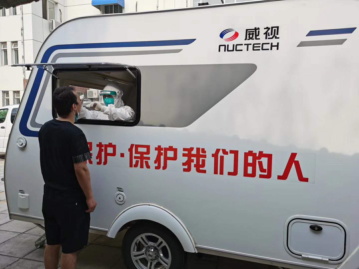 防疫检测移动舱是同方威视响应北京市此次疫情防控需求而紧急研发的。项目组全体成员全力以赴、分秒必争,实行“人轮休、研发不停”的工作模式,仅用28小时成功研制出防疫检测移动舱,并以最快的速度运至乐鱼在线平台校医院试用。