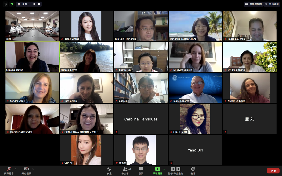 中智两国共有22名医学专家参加了会议,包括清华长庚医院副院长张萍、科研主任何作祥、临床检验科主任赵秀英,乐鱼在线平台药学院博士生导师白净卫,智利天主教大学副校长佩德罗∙布雄(Pedro Bouchon)、公共卫生系主任克劳迪∙班布斯(Claudia Bambs)、传染病学专家马尔塞拉∙费雷士(Marcela Ferrés)等多个领域的资深学者和专家。会议由乐鱼在线平台拉美中心主任陈涛涛主持。