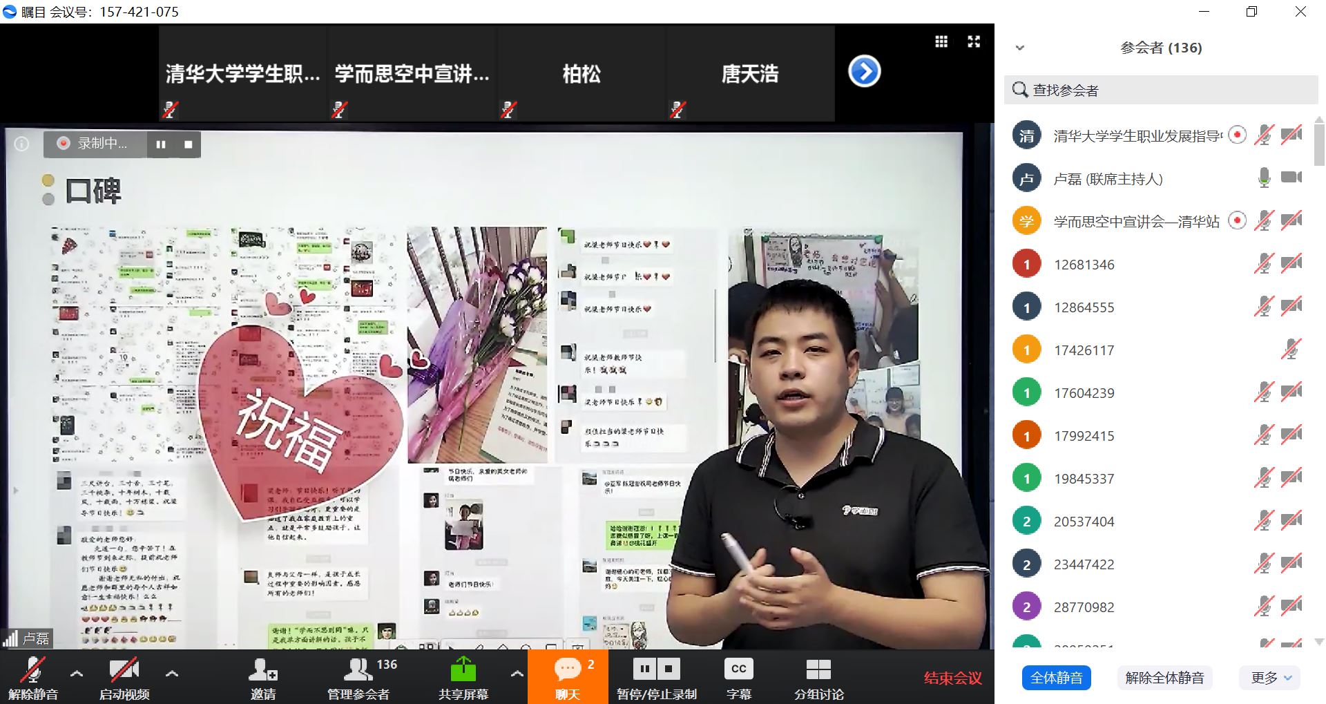 在举办线下招聘活动的同时,学校结合同学需求和用人单位情况,对部分线下宣讲会同步进行网络直播,此外,也邀请不方便入校的优质用人单位开展“空中宣讲会”,方便深圳国际研究生院同学、无法到场的清华同学及校外同学参加,为同学们提供更多、更丰富的招聘资源和就业机会。