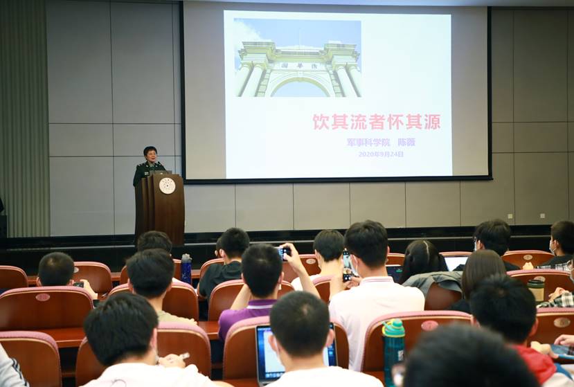 课上,陈薇以自身工作经历为主线,向同学们分享了自己奋战在抗击烈性病毒前线的动人故事,从抗击“非典”长时间奋战在负压实验室到汶川地震后第一时间前往灾区前线支援,从参与2008年北京奥运会安保工作到与埃博拉病毒直面斗争,特别是新冠疫情以来,她率领团队同时间赛跑、与病魔较量,研制重组新冠疫苗让世界再次见证“中国速度”。在危难之时闻令而动已成为陈薇和团队的常态,对于此次新冠疫情,她说,“除了胜利,别无选择”。