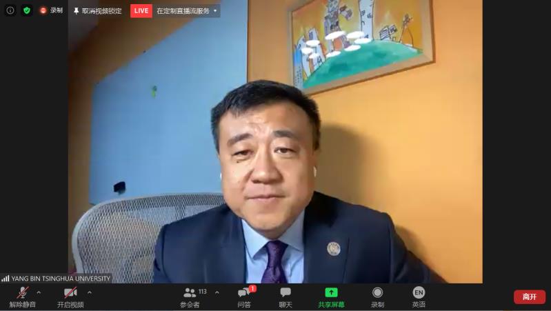 杨斌在问答环节中还表示,在加强中智大学未来合作时,应充分理解双方需求,发挥双方优势,实现双赢,在数字经济、在线教育、工程教育等领域可加强合作。清华愿与智利及拉美的大学积极推进公共卫生、全球气候变化领域的合作,共同探讨人类社会面临的世纪挑战。