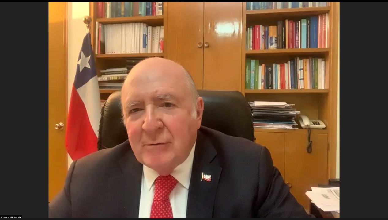 施密特大使在致辞中表示,中国经受住了疫情的考验,经济正在有序恢复和稳步增长。随着中国经济恢复,智利对华出口已经非常稳定,中国对智利直接投资也出现了强劲增长。中国在5G、人工智能等高科技领域不断取得发展,值得智利学习。他还表示,智利正与中国开展疫苗领域的研发和试验合作并取得积极进展,祝愿疫苗研发早日成功。