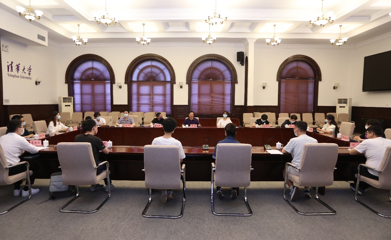 邱勇与三位毕业生代表进行了亲切互动,询问了他们毕业就业的情况。他说:“你们的成长进步和人生选择彰显了清华‘又红又专,全面发展’的教书育人特色,体现了清华人‘爱国奉献,追求卓越’的价值追求,我为你们感到骄傲。”习近平总书记在庆祝中国共青团成立100周年大会上的讲话中强调,青春孕育无限希望,青年创造美好明天。邱勇表示,同学们身上承担着学校和社会给予的无限希望,要将个人的人生追求和国家、社会、人民的需要紧紧结合在一起,牢记总书记的嘱托,到祖国和人民最需要的地方发光发热。