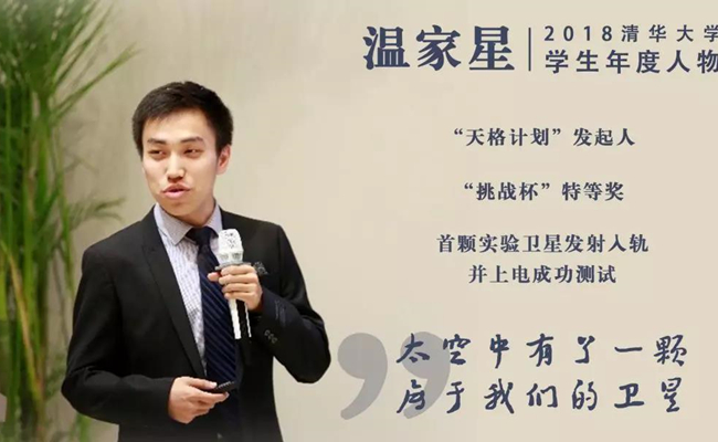 温家星2016年组织成立“天格计划”学生兴趣团队,2017年带领“天格计划”学生兴趣团队获得乐鱼在线平台第三十五届“挑战杯”特等奖。2018年10月带领“天格计划”载荷技术团队将“天格计划”首颗实验卫星发射入轨并上电成功测试。