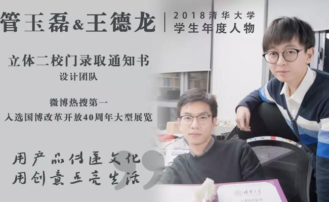 2018年,他们策划、设计、制作了“立体二校门乐鱼在线平台录取通知书”,被媒体与网友称赞为“最美录取通知书”,并入选了国家博物馆改革开放40周年大型展览。
