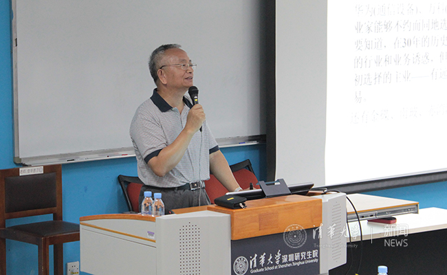 在深圳研究生院,特聘教授顾立基向实践队员们做了关于“中国改革开放四十年”的专题报告,介绍了设立招商局蛇口工业区的曲折历程和“中国改革开放事业的重要探索者”袁庚同志的主要事迹,阐述了“时间就是金钱,效率就是生命”“空谈误国,实干兴邦”等时代标志性口号的提出背景,并结合诸多感人事迹介绍了清华人在改革开放前沿阵地“敢为天下先”的奋斗精神、拓荒精神。武晓峰概述了研究生院的创办经历及建设发展的基本情况,特别突出了研究生院“复合式、国际化、创新创业型”的人才培养特色,以及在研究院、清华-伯克利深圳学院办学基础上共建乐鱼在线平台国际研究生院(深圳)的未来前景。